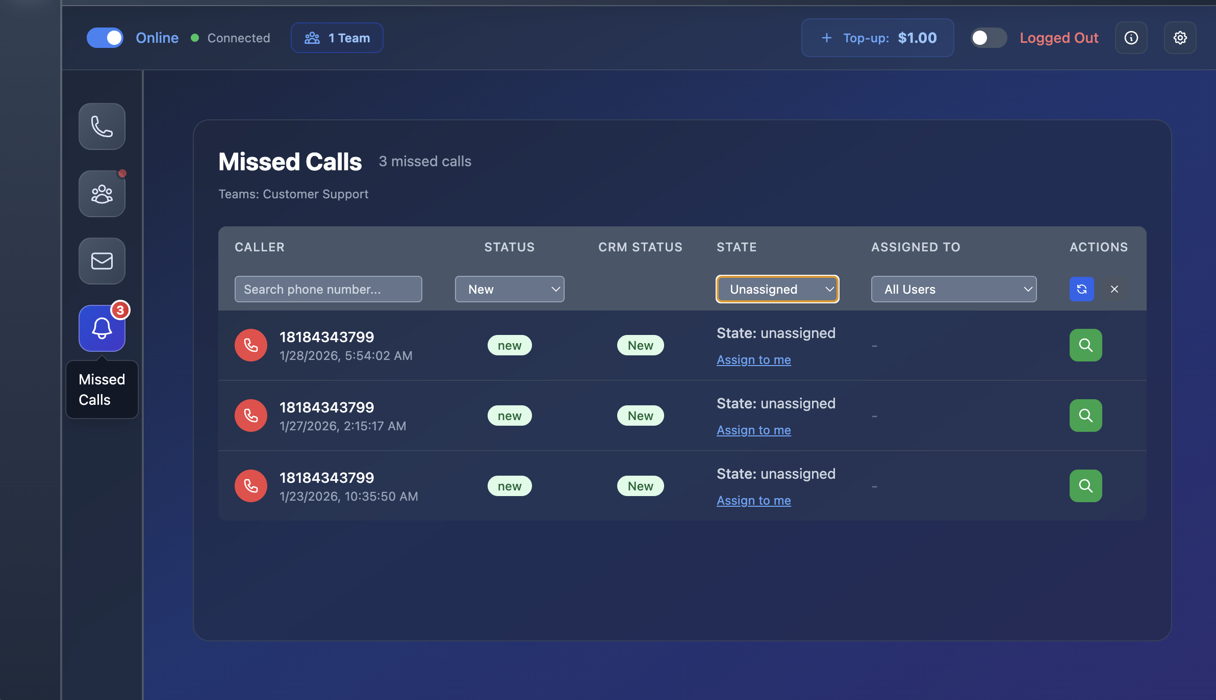 - Centralized missed call dashboard